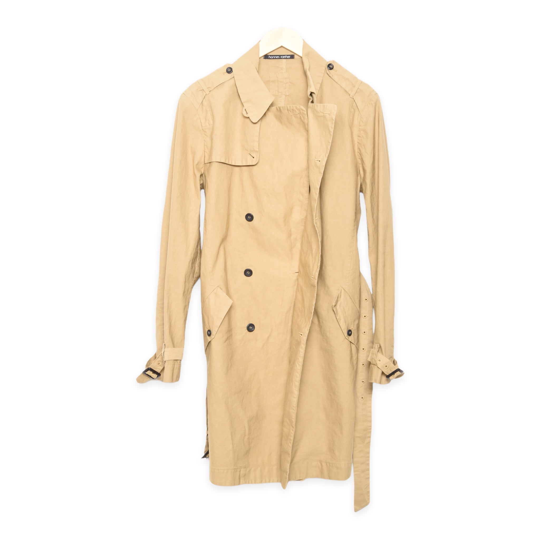 - mid length coat with double breasted closure